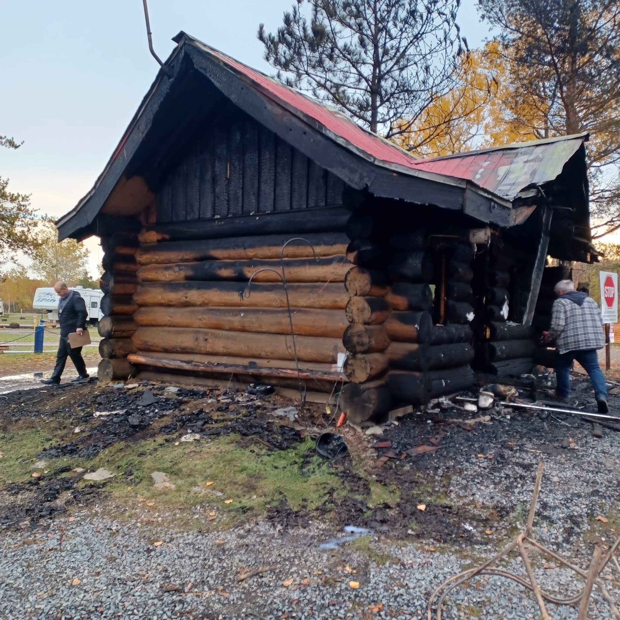 The log cabin at the campground was burnt down Thursday morning at around 2:30. The culprit was arrested a short time later by the O.P.P.